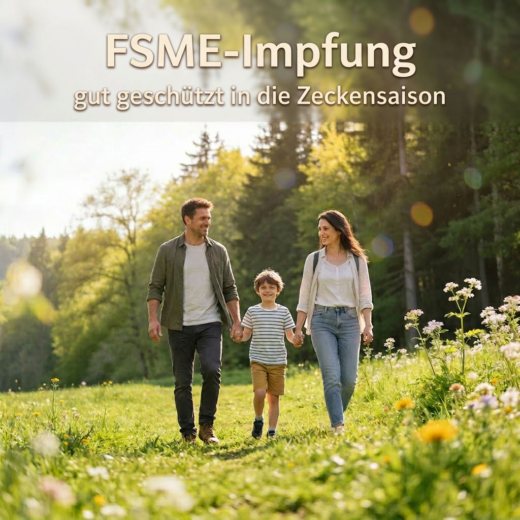 Nutzen Sie den Frühjahrsbeginn, um Ihren Impfausweis zu prüfen: Ist Ihre FSME-Impfung vollständig und aktuell? In meiner Praxis beraten wir Sie gern persönlich und führen bei Bedarf die Impfung durch – damit Sie die Zeit im Grünen gut geschützt genießen können.